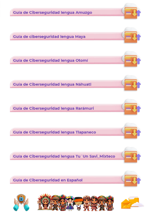 La Guía de Ciberseguridad para Niñas, Niños y Adolescentes se encuentra disponible en español, Amuzgo, Maya, Otomí, Náhuatl, Rarámuri, Tlapaneco y Tu’un Savi (mixteco). El documento explica riesgos frecuentes al usar internet como robo de datos personales, acoso digital y suplantación de identidad. También detalla los tipos de malware que pueden afectar dispositivos, entre ellos virus, troyanos, adware, spyware, ransomware, gusanos y rootkits.